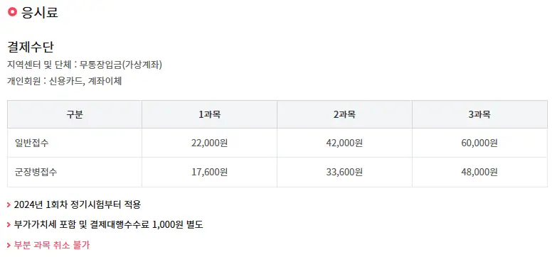 ※군인은 응시료 할인