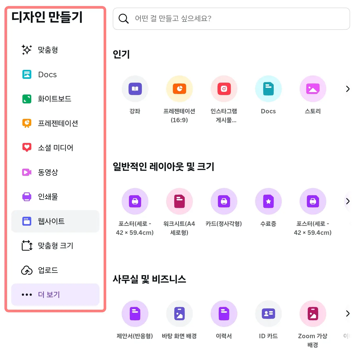 블로그 썸네일, SNS 게시물 등 원하는 디자인 유형을 선택하세요.