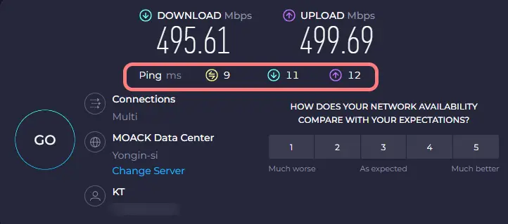 - 인터넷 속도 테스트 Speedtest.net 사이트에서 Ping 값을 측정하세요.