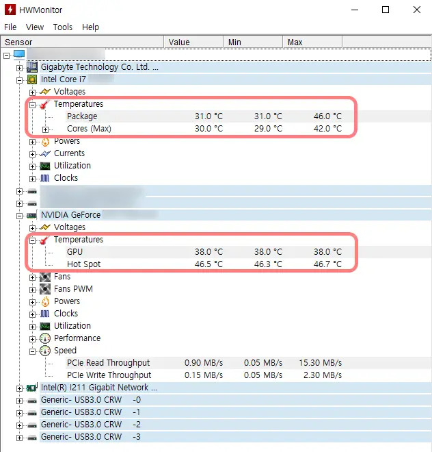 HWMonitor – CPU 및 GPU 온도 모니터링