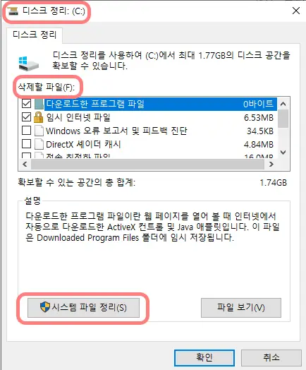 - 정리할 드라이브 선택 (보통 C드라이브)