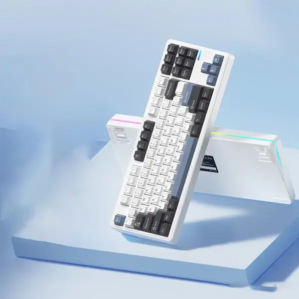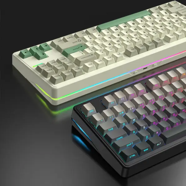Riccks RS8은 텐키리스(87키) 배열의 기계식 키보드로, 유선과 무선(2.4GHz 동글 및 블루투스) 연결을 모두 지원합니다.