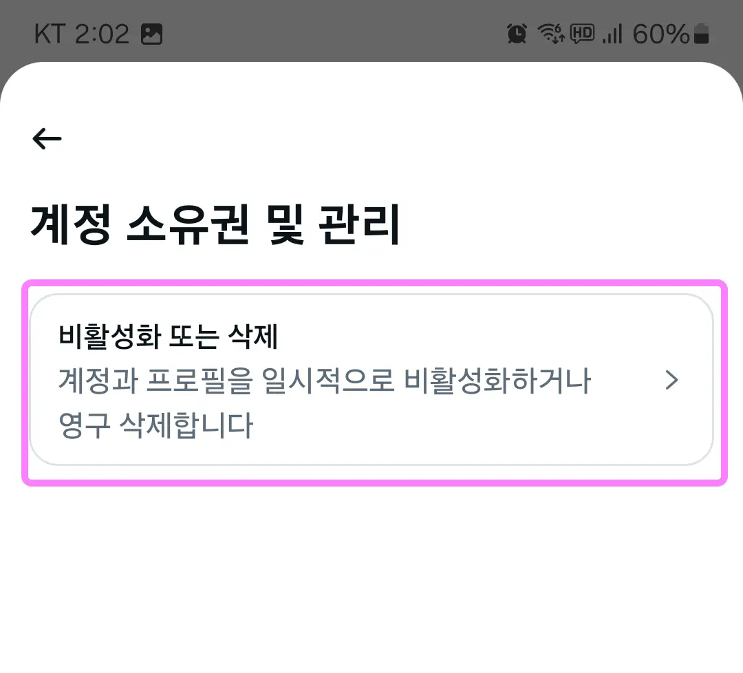 단, 프로필이 사라지기 때문에 상대방이 검색했을 때 '없는 계정'으로 표시됩니다.