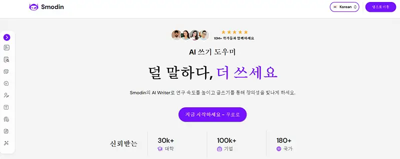 왜 Smodin 학생, 교사, 작가들에게 Smodin이 사랑받는 이유를 알아보세요 매일 1,000만 개 이상의 기업, 학생, 교사, 작가가 AI 콘텐츠 작성 도구를 사용하여 글쓰기 프로세스를 간소화하고 있습니다.